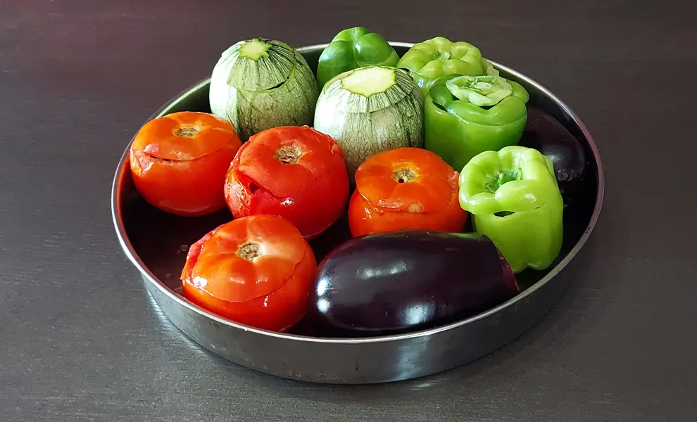 - Підберіть овочі для фарширування, виходячи з розмірів вашої форми для запікання. Вони повинні повністю заповнити весь простір, перебуваючи у правильному положенні.