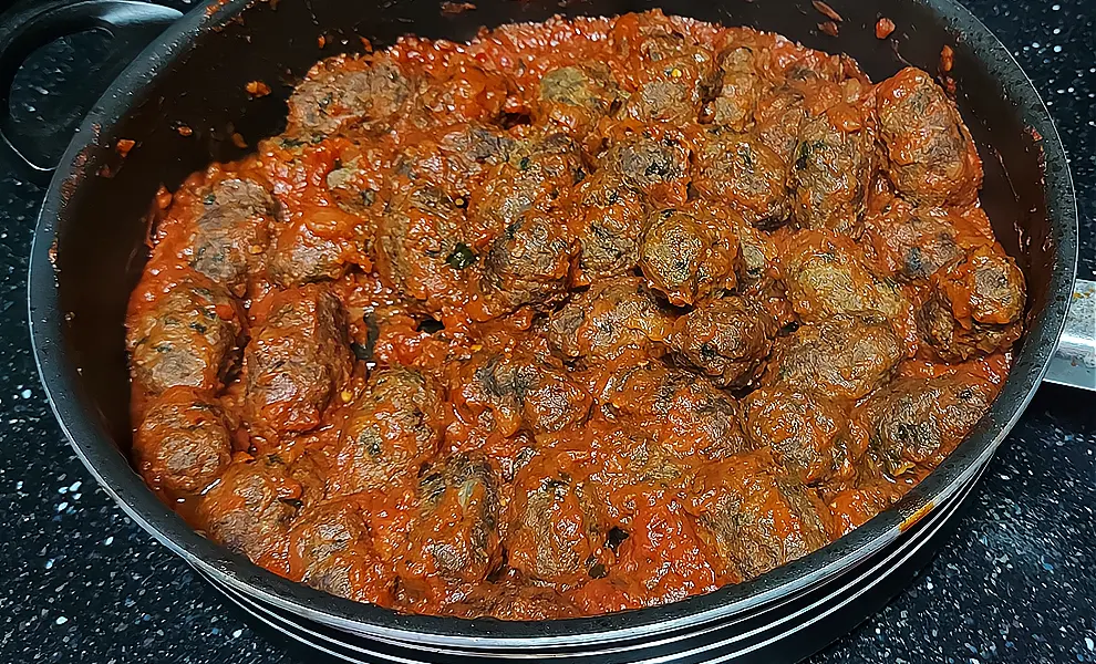 Смірнейка судзукак’я (Σμυρναίικα σουτζουκάκια) – ароматні мініатюрні довгасті м’ясні котлетки з яскравим смаком кмину в томатному соусі.