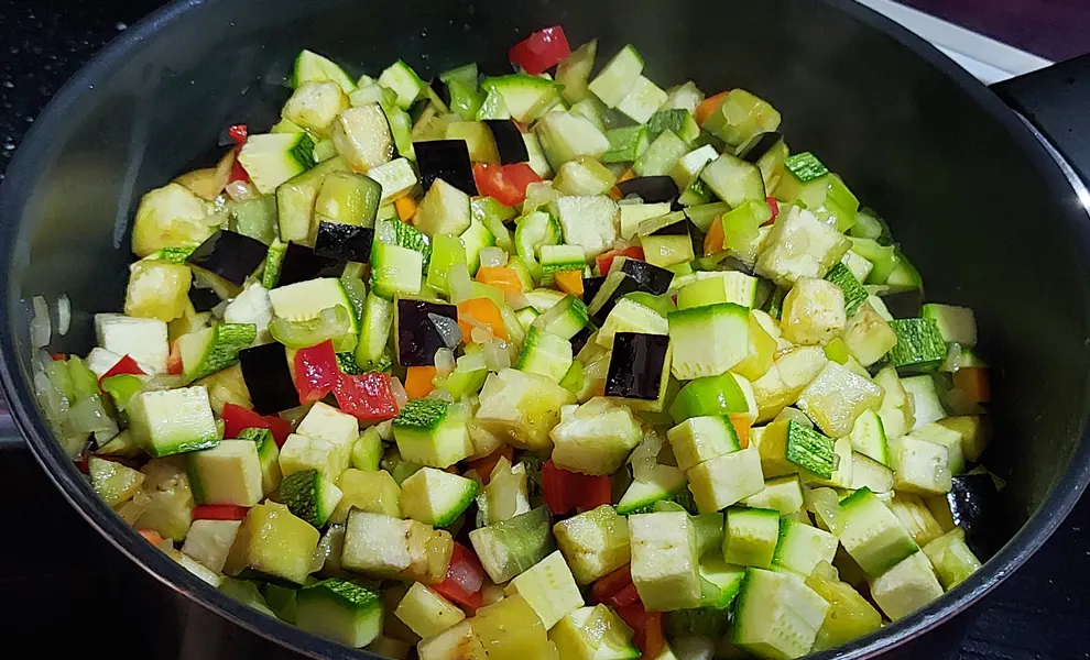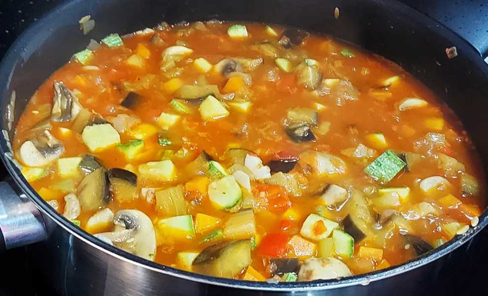 Я дещо адаптувала рецепт і додала гриби — вийшло ще смачніше та насиченіше. Баклажани, кабачки, солодкий перець, томати та печериці — всі вони чудово поєднуються, наповнюючи страву ароматом літа.