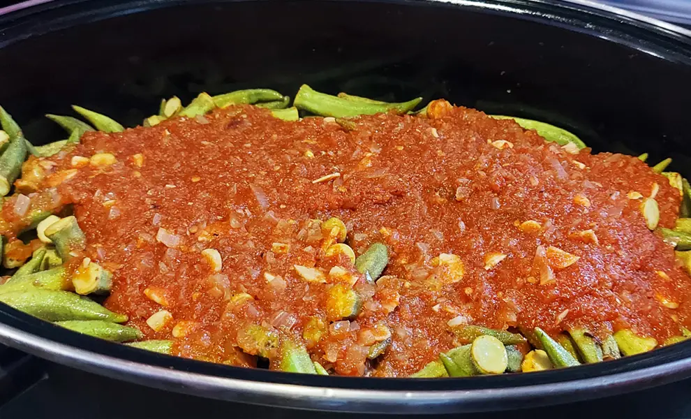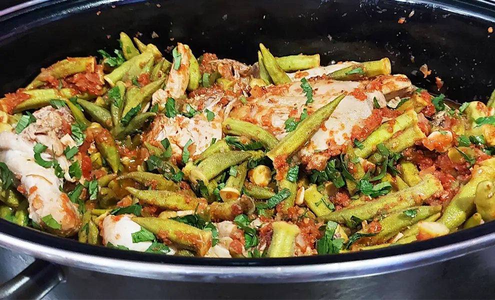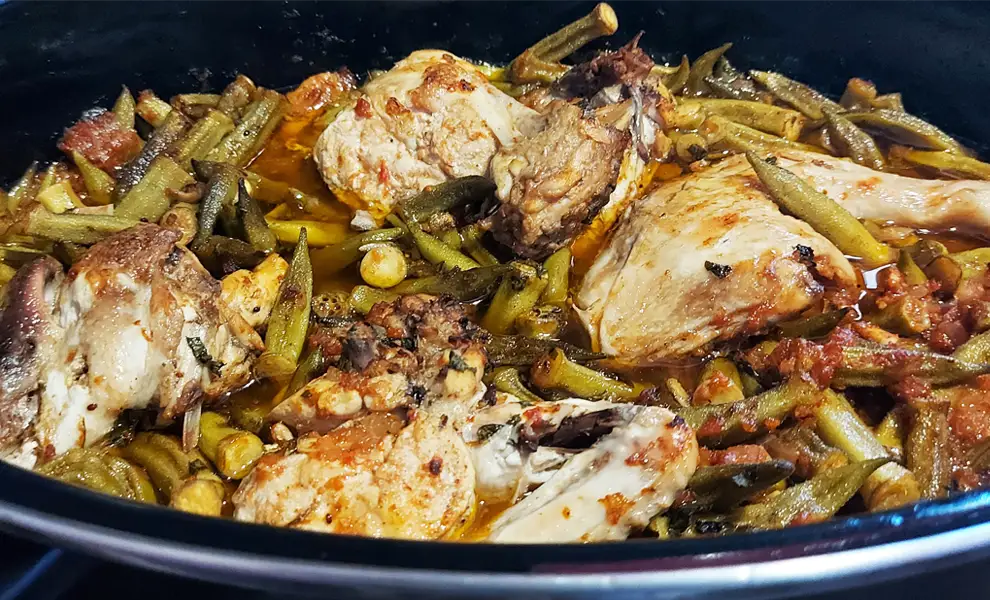 Цей грецький рецепт курки з бамією (окрою), приготований у гусятниці, — справжня знахідка! Повільне томління в духовці робить м’ясо неймовірно соковитим, а бамію — ніжною. Так, це потребує трохи більше часу, але результат того вартий!