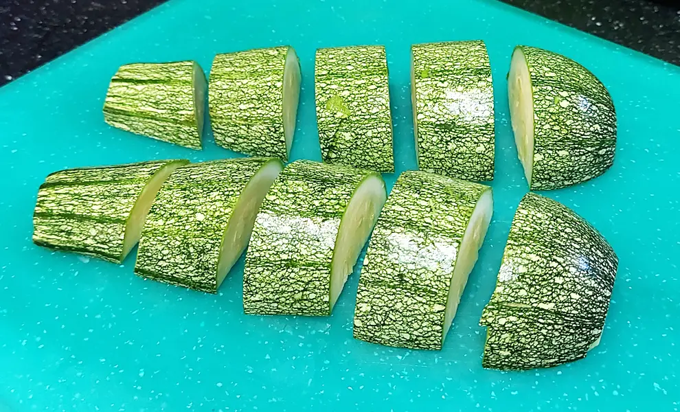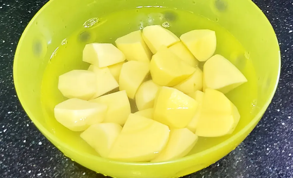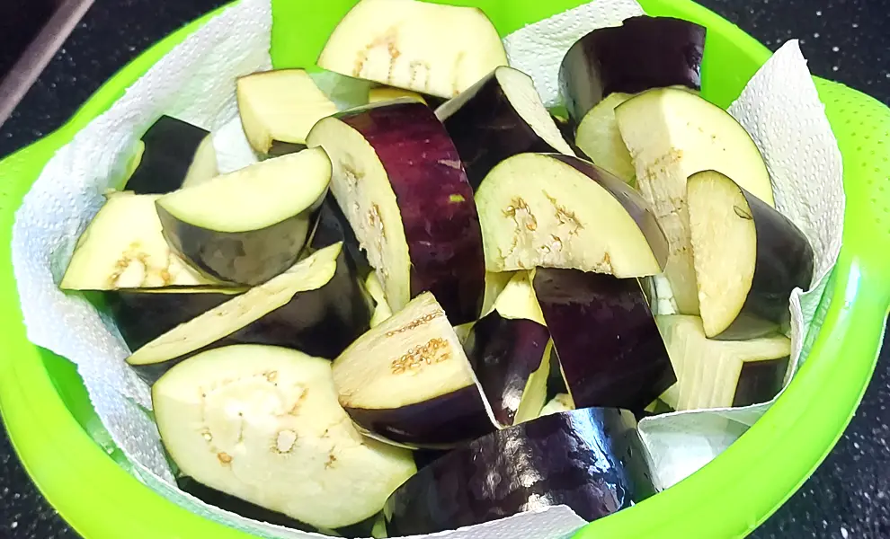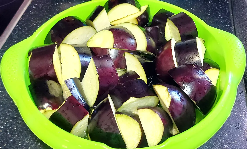 - Складіть шматки баклажанів у миску з водою і залиште на 10 хвилин.