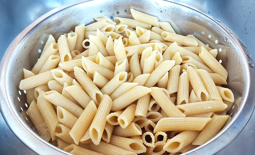 - Відваріть пасту у підсоленій воді на 2–3 хвилини менше, ніж зазначено на упаковці. Злийте воду.