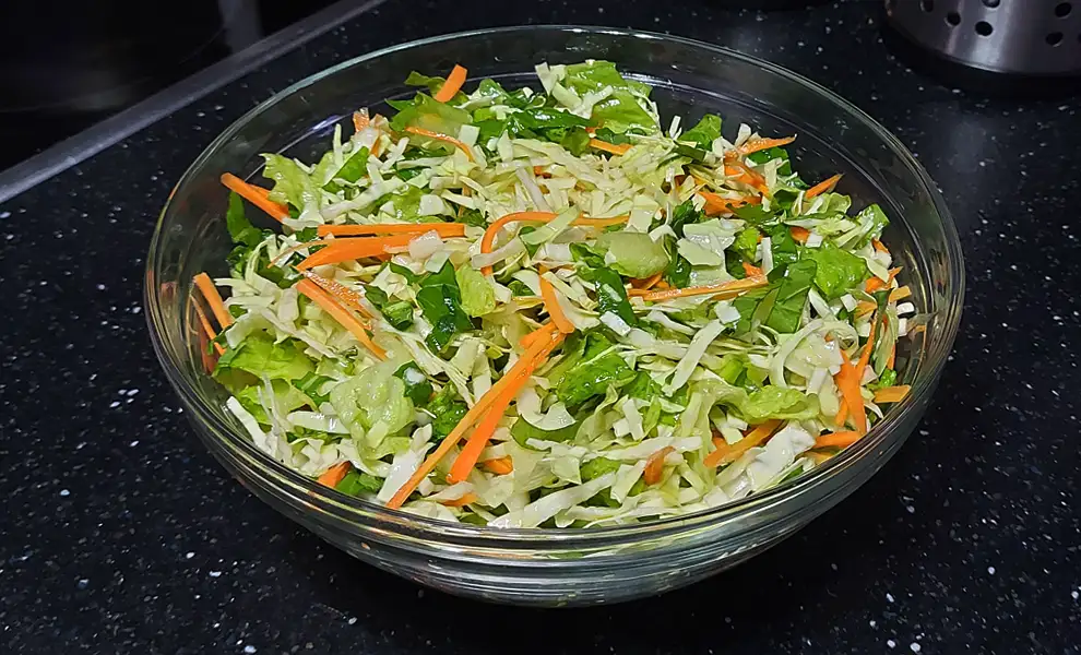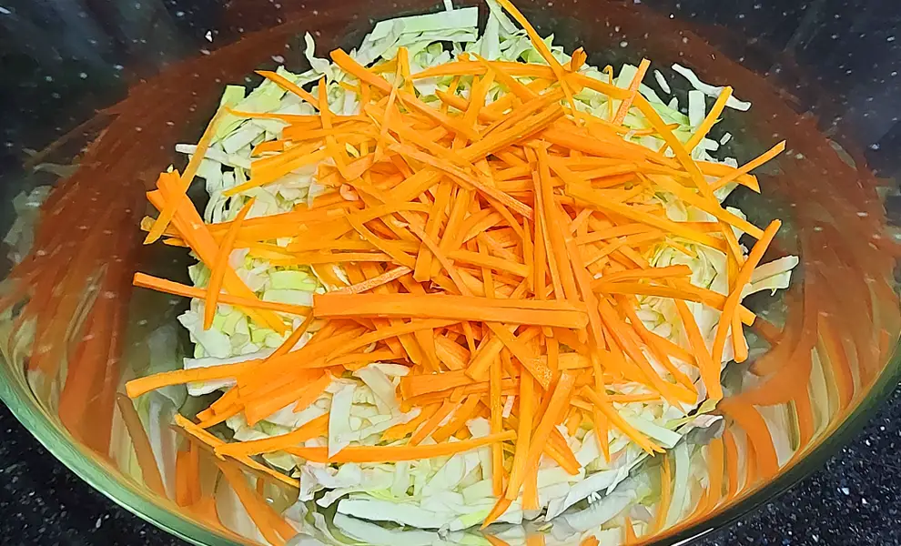 Свіжий капустяний салат з морквою багатий на харчові волокна, вітамін С і бета-каротин (попередник вітаміну А);