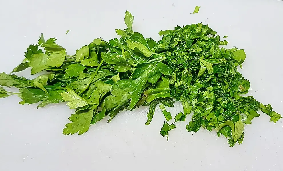 - Мелко нарежьте ножом петрушку.