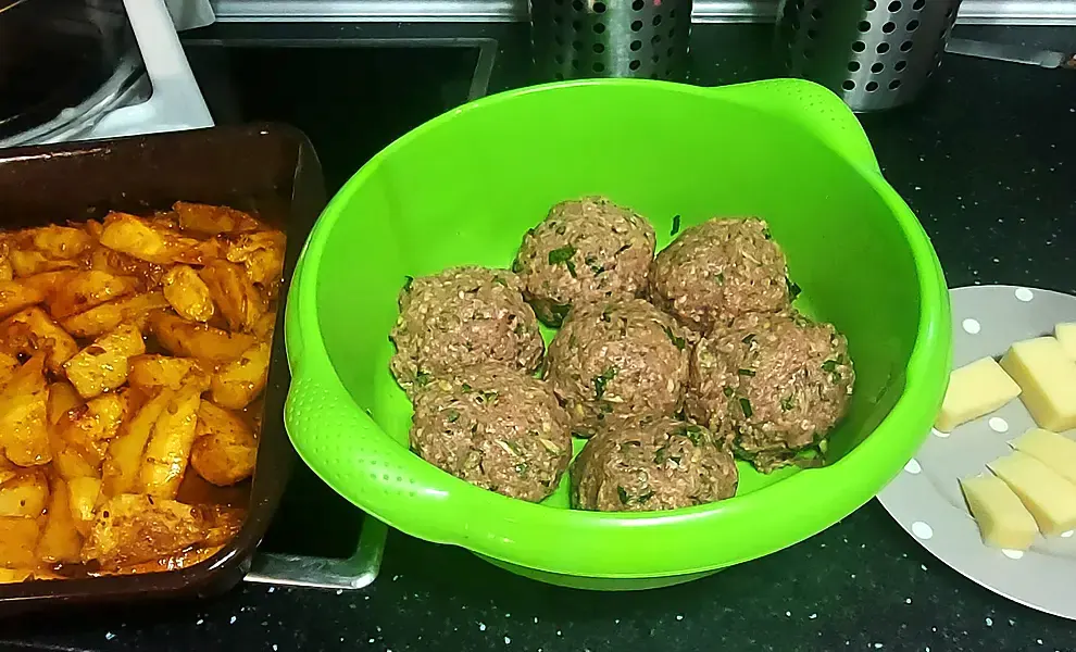 - Разделите фарш на 6-7 частей. Подготовьте такое же количество кусочков сыра. Сформируйте крупные котлеты, положив сыр внутрь, немного сплюсните, чтобы они получились более плоскими.